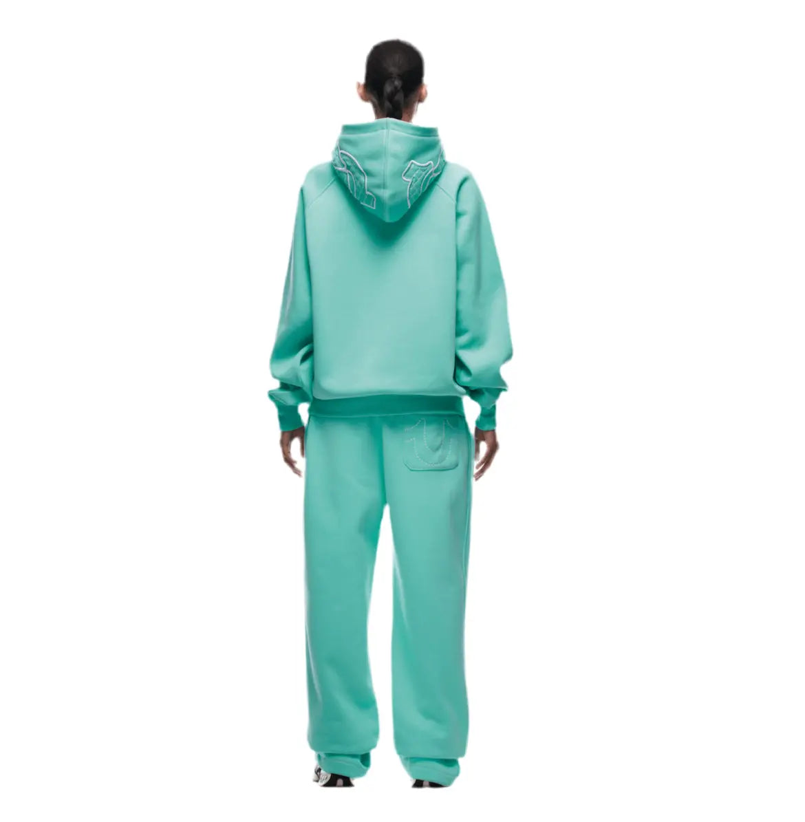 Jacky ist 1,77 groß und trägt Größe 36 (EU). Normalerweise trägt sie bei ihren T-Shirts und Pullovern die Größe XS.