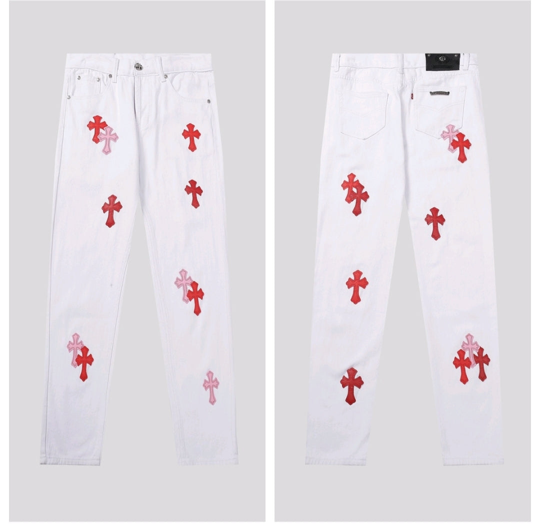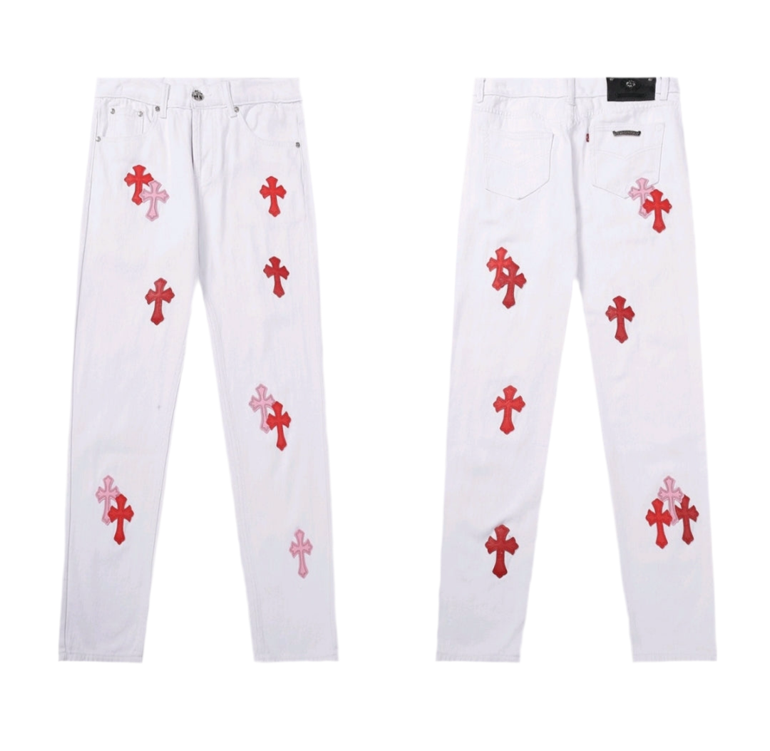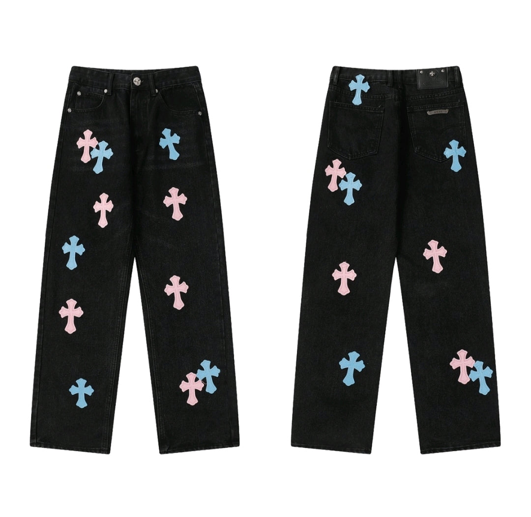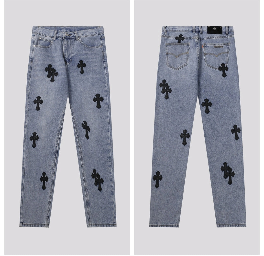 Not your average jeans. The Chrome Hearts Denim is for the bold, the different, the ones who don’t follow trends — they make them. Crafted with heavy-duty denim and iced out in signature CH cross patches, these jeans scream luxury rocker vibes with a street twist.