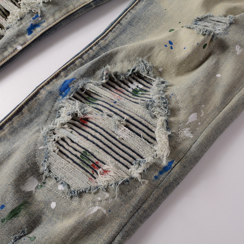 Overview Premium Comfort: 98% cotton and 2% spandex blend for softness and flexibility Modern Style: High-street graffiti and ripped details...