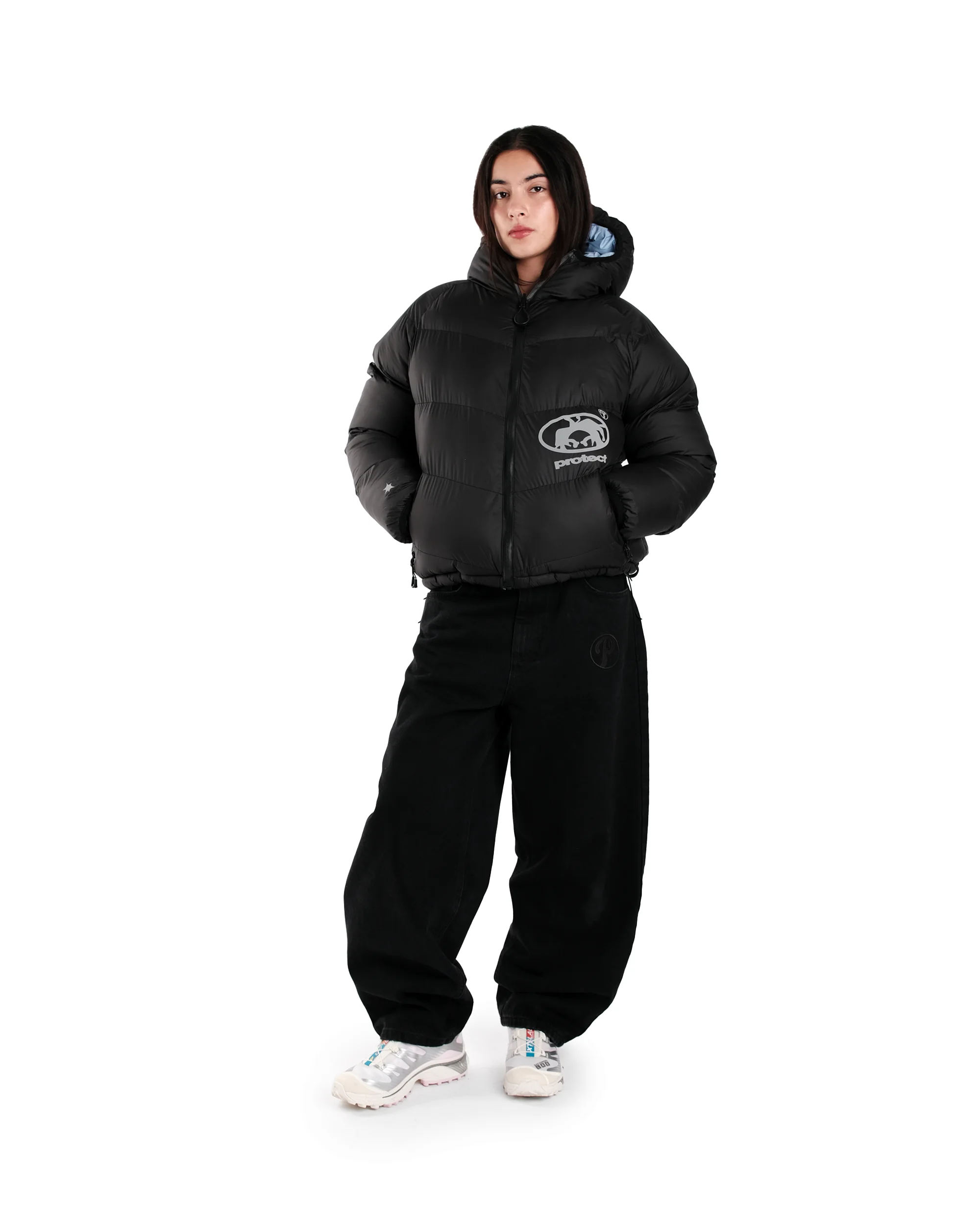 Y2K Protect Down Jacket Retro Reversible Hooded Couples Coat American High Street Hip Hop Streetwear Unisex Casual Puffer Jacket